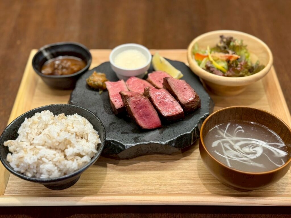 まずは、何もつけずにひと口。 炭火の香ばしさとレスト法で閉じ込められた肉汁の濃さを、そのまま味わってください。